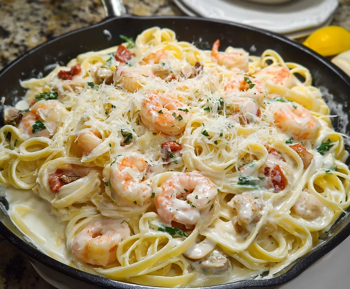 This creamy Seafood Alfredo Pasta is a comforting dish that combines tender pasta with shrimp and other tasty seafood. It’s rich, filling, and oh-so-delicious!
