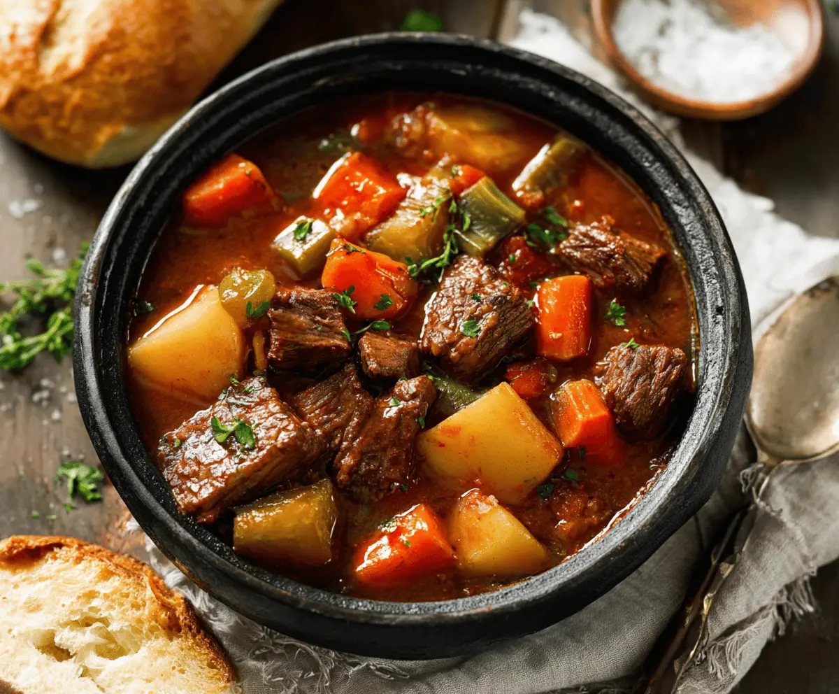 There’s nothing quite like coming home to the warm smell of stew. I like to top mine with fresh bread for a cozy meal. What about you—are you team bread or team spoon? 🥖