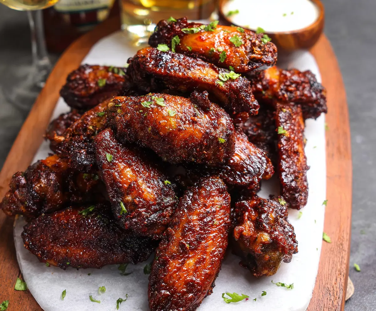 Transfer the wings to a serving platter, garnish with freshly chopped herbs, and serve with ranch or blue cheese dressing alongside celery and carrot sticks. Dig in and enjoy your smoky, flavorful wings!