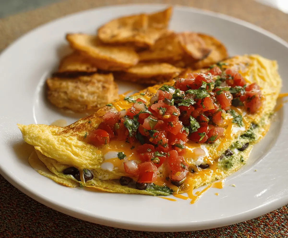 Start your day right with a delicious Southwest Omelet! Packed with eggs, bell peppers, onions, and spicy salsa, this dish brings a burst of flavor to your breakfast table.