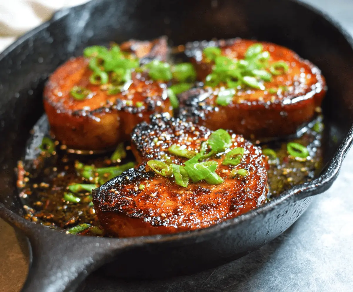 Remove the pork chops from the heat. Garnish with sliced green onions and toasted sesame seeds for a nice crunch and extra flavor. Serve hot alongside steamed rice or your favorite vegetables. Enjoy every bite of your flavorful and juicy Soy Garlic Pork Chops!