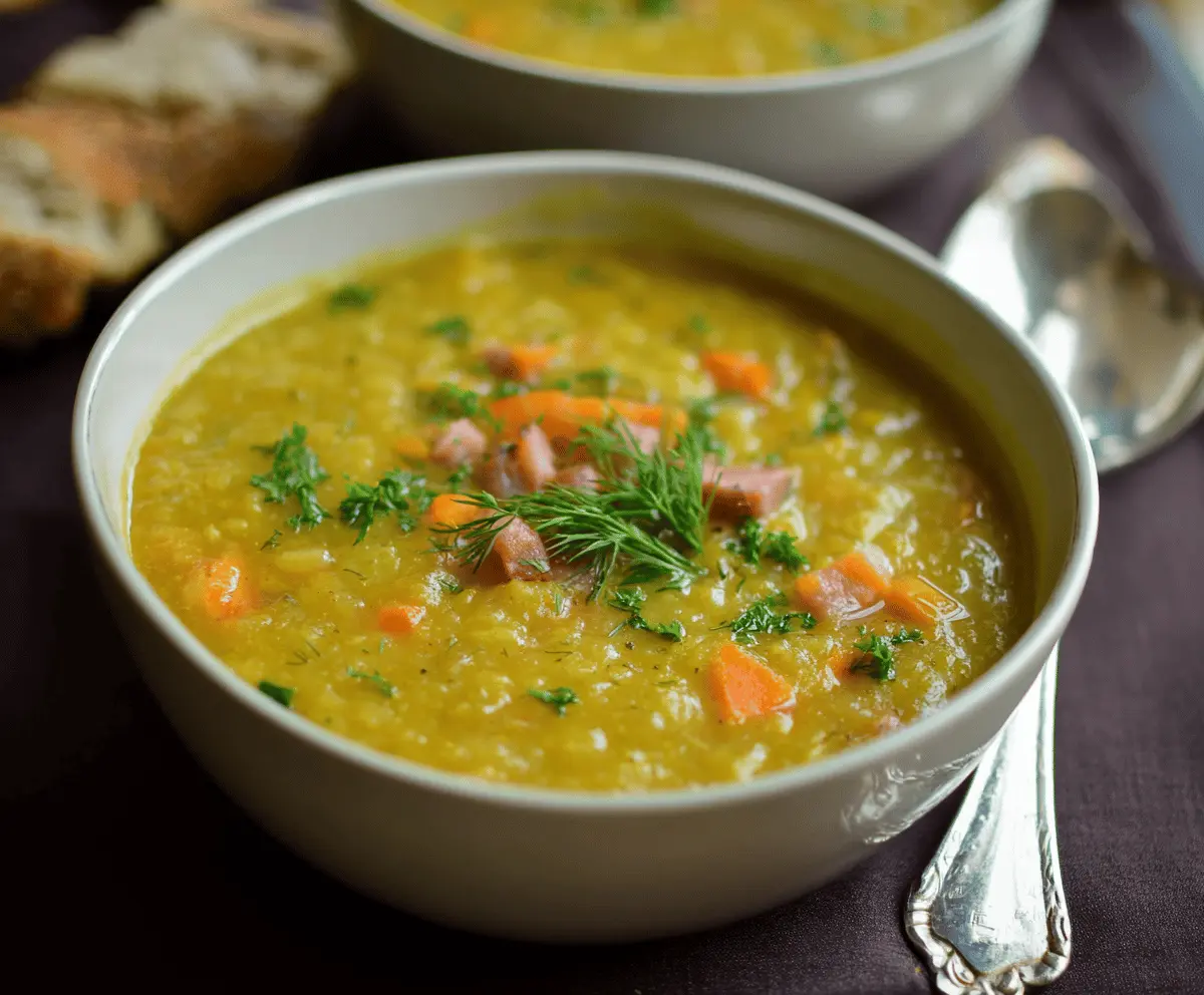 Split pea soup is a warm and hearty dish that is packed with flavor! Made with split peas, carrots, onions, and delicious spices, it’s perfect for a cozy meal.