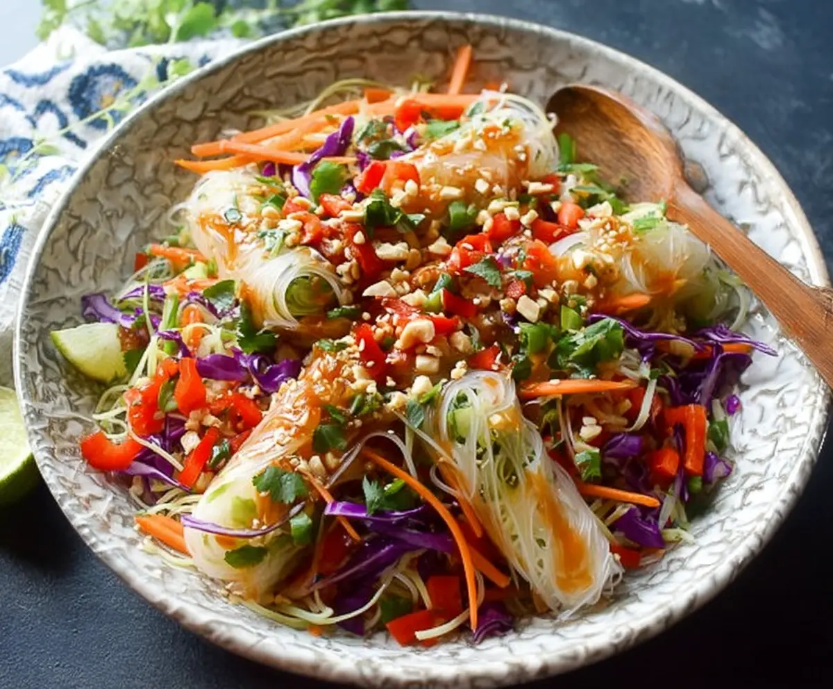 Serve your Spring Roll Salad immediately, making sure to include lime wedges on the side for an extra burst of fresh citrus. Enjoy this vibrant and refreshing dish!