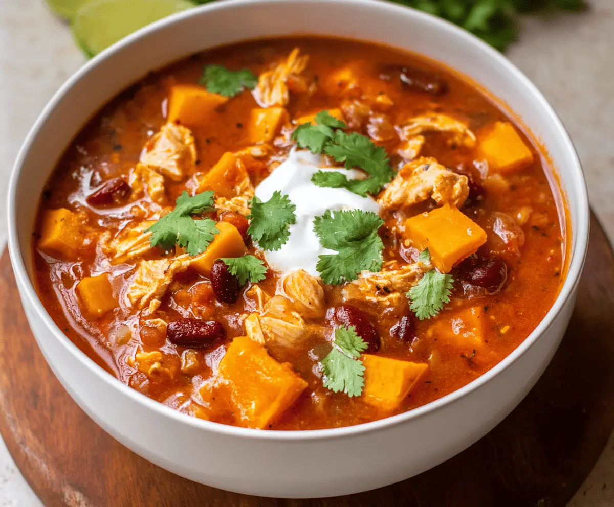 This Sweet Potato Chicken Chili is a warm and cozy dish packed with flavor. The tender chicken, sweet potatoes, and spices come together for a satisfying meal that’s also hearty.
