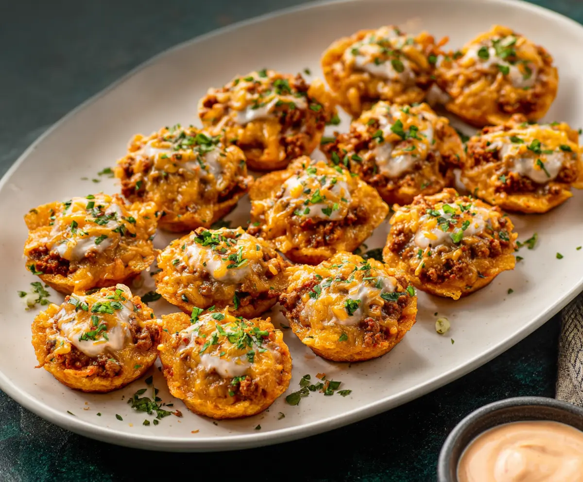 Taco Ranch Bites are a fun and tasty treat that packs a punch! They’re made with crunchy chips topped with zesty taco meat, cheese, and a drizzle of ranch dressing. Yum!