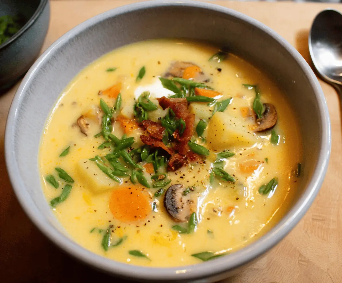 After the potatoes are tender, carefully remove about half of the soup from the pot. Use an immersion blender or a regular blender to blend this portion until smooth. Once blended, return it to the pot for a nice creamy texture while still keeping some chunks of potato.