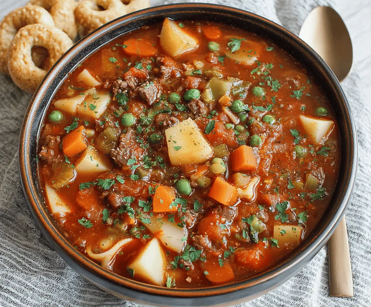 This hearty Vegetable Beef Soup is packed with tender chunks of beef, colorful veggies, and tasty broth. It’s perfect for warming up on chilly days!